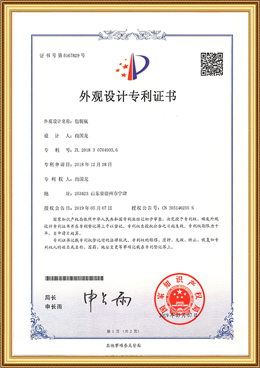 • 外觀設計專利證書